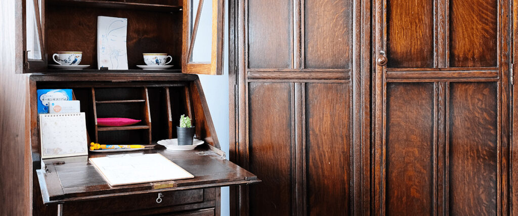 ゆったりと落ち着いた雰囲気の待合室。アンティーク調で統一された待合室で診察までおくつろぎください。