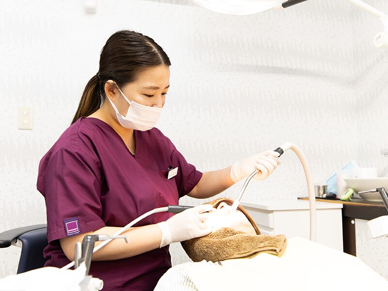 エアフローは、歯面清掃を行う機械の一種で、非常に細かなパウダー粒子をジェット噴射で歯に吹き付けることにより、歯にこびりついた汚れを効果的に落とすことができます。