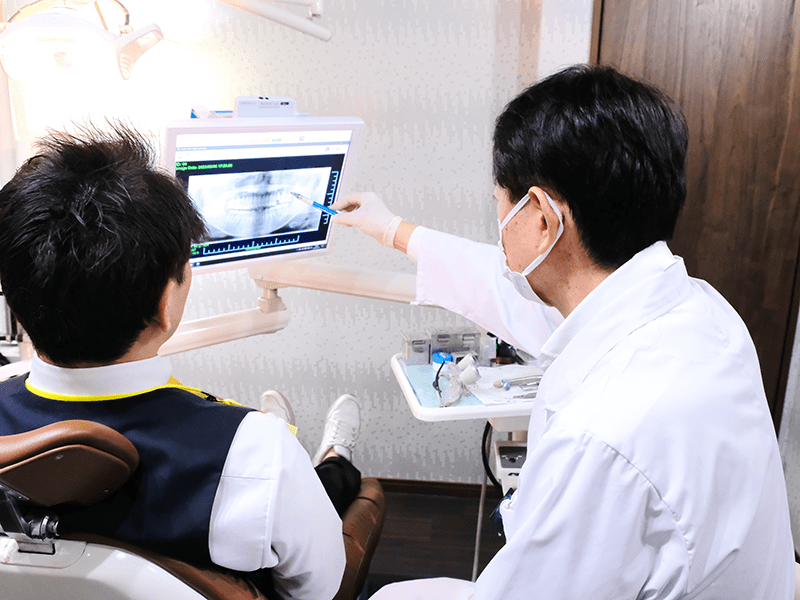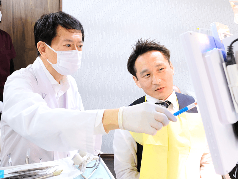 お口のレントゲン写真を実際に見ていただきながら、どこが悪いのか、どんな治療をしていくのかを細かくお伝えします。